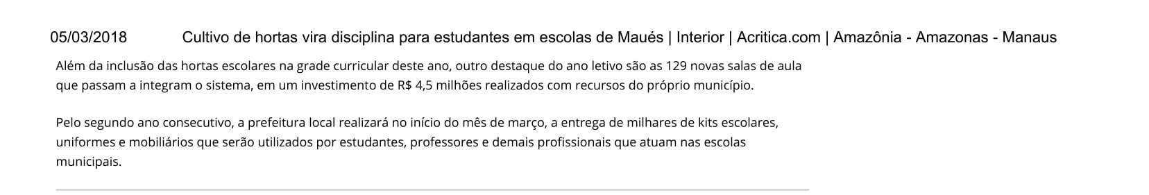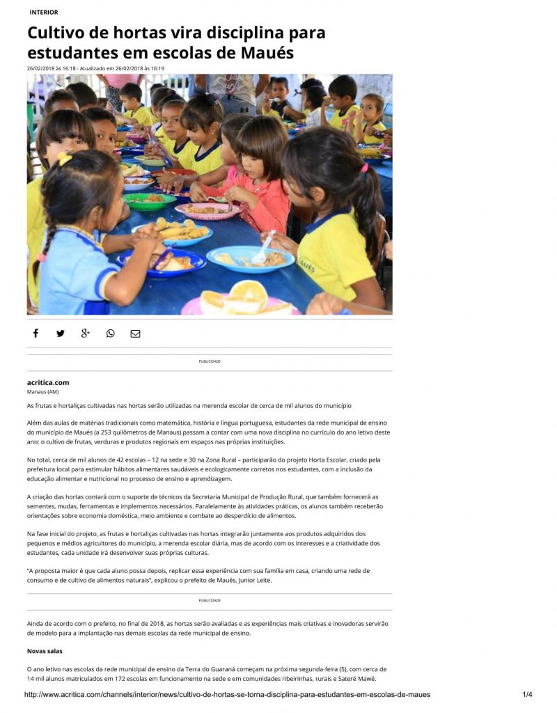 Cultivo de hortas vira disciplina para estudantes em escolas de Maués 26 de fev de 2018 | 10:09 Ouvir Compartilhar Tweet Compartilhar Tweet