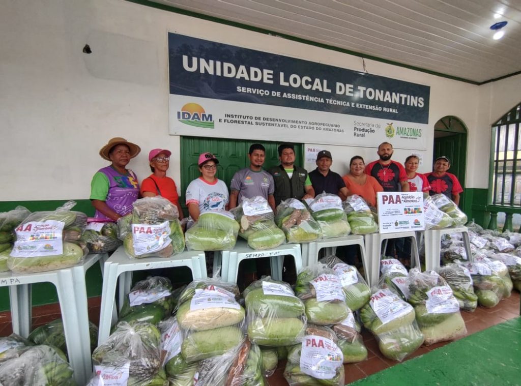 Em Tonantins, 26 trabalhadores familiares se inscreveram no programa, dos quais três já entregaram melancia, banana, abóbora, abacate, abacaxi, macaxeira, cará roxo e milho para a distribuição. A produção vendida somou 1,5 tonelada, inserida em 80 cestas básicas distribuídas a famílias em situação de vulnerabilidade, no município.